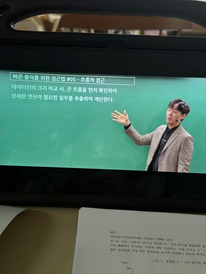 강의는 처음부터 끝까지 시험에 꼭 필요한 것만을 다루고 있었다. 개념 설명은 극소량이고, 합격자들의 문제 풀이 전략이나 강사님들의 꿀팁 같은 것들을 전달해주셨다. 내가 원래 풀던 방식보다 시간을 절반 이상 줄일 수 있는 방법들을 알려주셨다.
