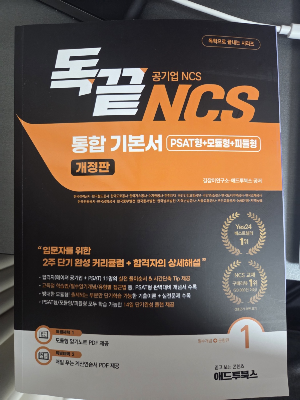 ncs를 항상 시험 코앞에 닥쳐서만 공부하다가 제대로 공부해보고 싶어 독끝 기본서를 구매했습니다!