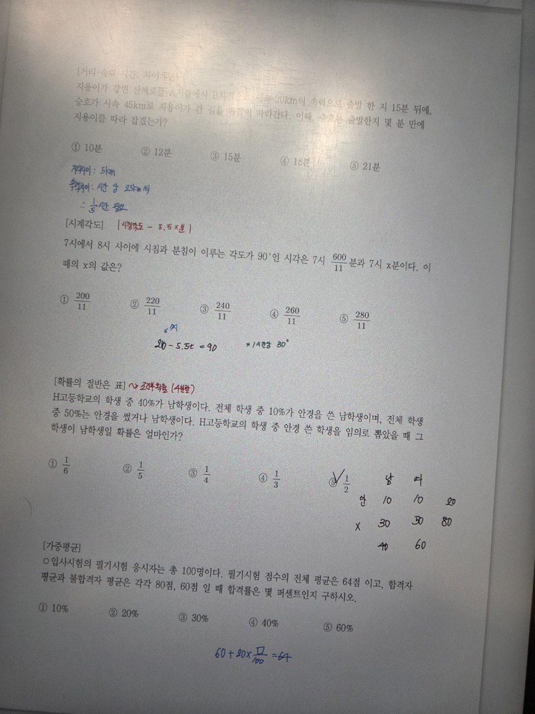 빠른 풀이를 위한 접근법 강의를 통해 계산을 줄이는 방식을 알게 되었고 그로 인해서 문제 풀이 속도가 크게 줄어들었습니다.
