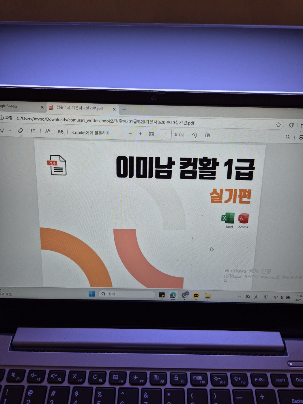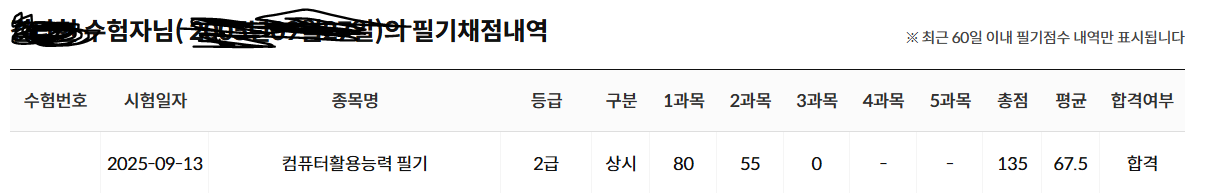 컴퓨터활용능력 2급 필기와 실기 모두 1번에 바로 합격했고, 필기 2일+실기 5일, 총 7일 준비했습니다.