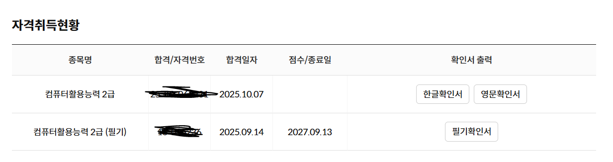 URL복사 링크가 복사되었습니다.kaka**** / 2025-10-14 *이미남 컴활 2급 필기+실기 자격증 수강후기*