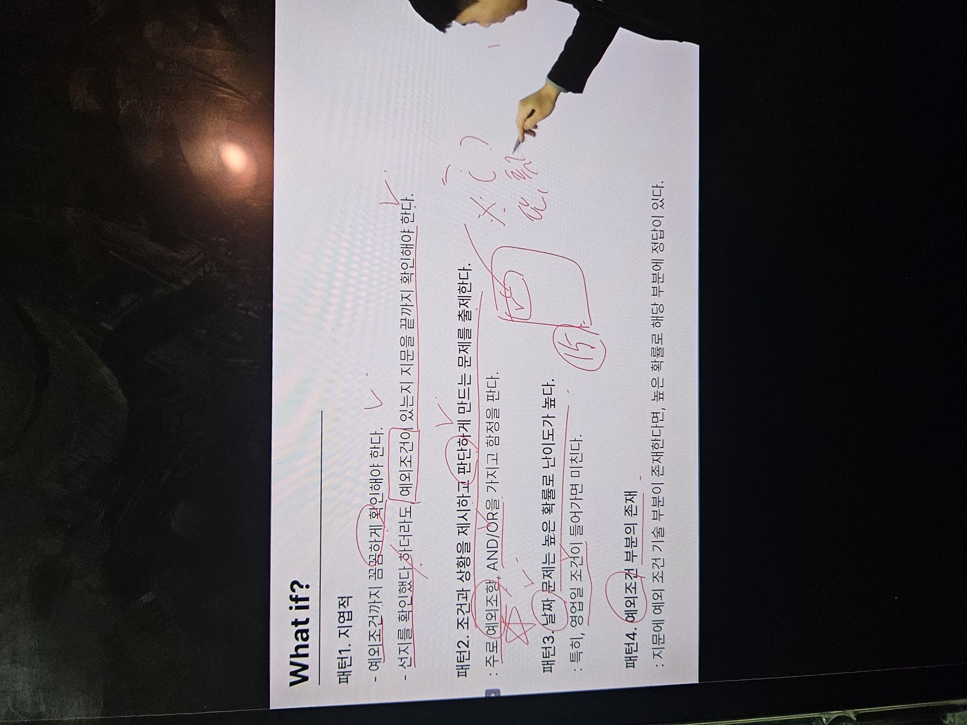 강의는 단순히 문제 풀이를 반복하는 방식이 아니라 자주 출제되는 유형을 중심으로 최적의 풀이 순서와 사고 흐름을 정립해 주는 실전형 커리큘럼으로 구성되어 있었습니다. 무작정 모든 선지를 다 따져보려던 기존의 나쁜 습관을 버리고, 필요한 조건부터 걸러서 적용하는 '읽는 순서'의 기술을 전수해 주어 풀이를 한결 깔끔하게 만들어 주었습니다. 또한 다양한 풀이 팁과 정답 판별 기준은 손이 멈추는 시간을 획기적으로 줄여주었습니다. 특히 경로 문제나 추론 유형을 다룬 심화 강의는 복잡한 구조를 유형화하여 무작정 계산이나 답 찾기 시도부터 하던 저의 나쁜 습관을 완전히 고쳐놓았습니다.