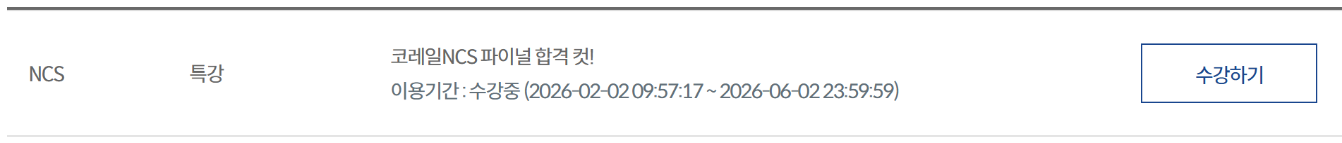 독끝 NCS 프리패스를 구독했으며 기초부터 심화,문제풀이까지 전반적인 커리큘럼을 수강 중입니다.