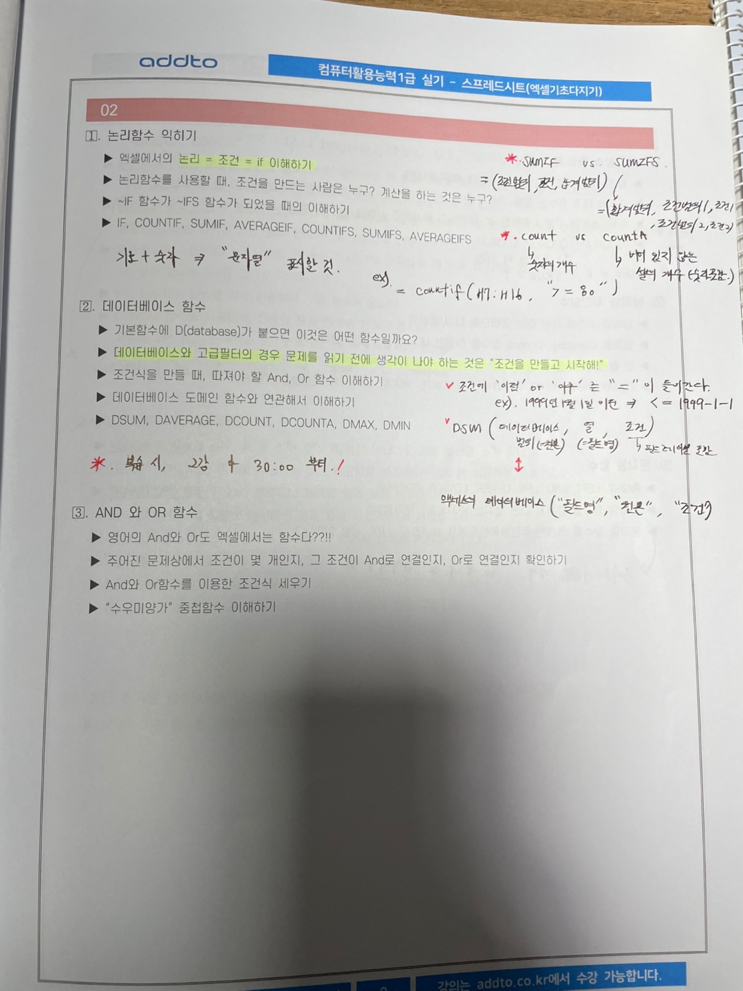 이러한 내용들을 타 인강들과 비교했고 결국 한정된 자원 안에 선택한 건 "애드투 이미남 컴퓨터활용능력 1급 인강"입니다! 주변에 같이 컴활 준비하는 친구들한테도 홍보하고 있고, 타 인강 듣는 친구들의 불편을 토로하는 걸 듣고 있으면 저는 정말 잘한 선택을 했더라고요! 강추강추합니다! -