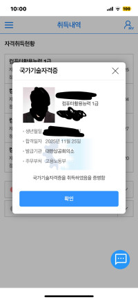 필기를 1트만에 합격할 수 있었으며 1급 실기 합격이라는 원하던 성과를 낼 수 있었습니다.