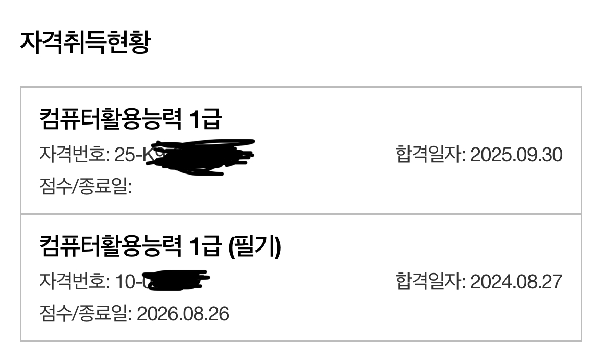 URL복사 링크가 복사되었습니다.kimi**** / 2025-10-11 #커리큘럼이 좋아요 #이해가 잘돼요 #딕션이 좋아요 #적절해요 #필기+실기 내돈내산 컴활2급필기실기 합격후기