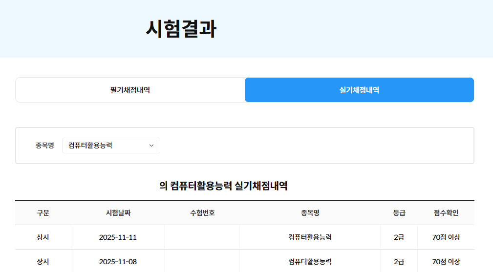 응시한 급수: 컴활 1급