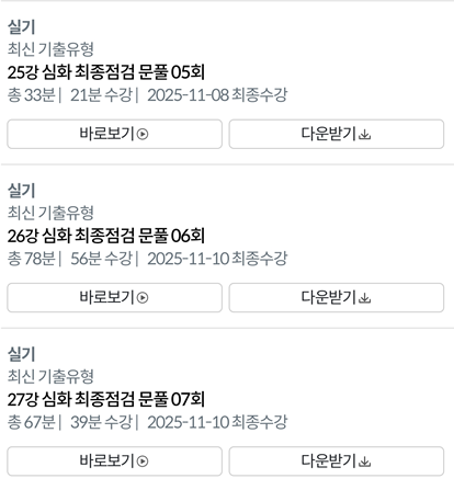 그리고 25년도 최신 기출을 다뤄주셔서 그것 또한 바뀌는 시험 흐름을 파악하는 것에 도움이 되었습니다. 모든 컨텐츠를 성실하게 다 소화하면 무조건 합격 보장입니다.!
