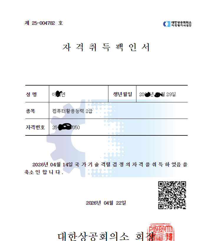 중간에 진짜 멘탈 여러 번 나갔습니다.. 6트쯤 했을 때는 그만둘까 싶었는데 “여기까지 했는데 더 해보자” 해서 버틴 게 결국 합격으로 이어진 것 같아요. 여러분도 진짜 포기만 안 하면 됩니다ㅠ 결과적으로 컴활 1급 실기 합격했고 2급도 같이 합격했습니다. 시험 결과 기다리는 기간도 길어서 타이밍 계속 어긋나고 스트레스도 엄청 받았는데 그래도 끝까지 해서 다행이에요.. 저는 심지어 스트레스 때문에 대상포진까지 걸렸었는데 여러분은 저처럼 무리하지는 마시고 건강 챙기면서 준비하시길 바래요..
