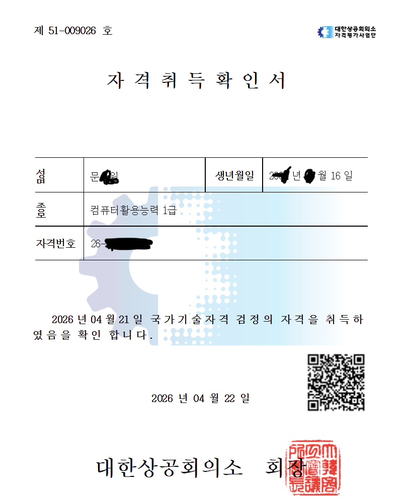 으로 준비한 컴활 1급 실기 합격 후기를 작성합니다. 저는 컴활 1급 실기만 준비했고, 총 준비 기간은 약 2개월, 응시 횟수는 총 2회로 최종 합격했습니다.