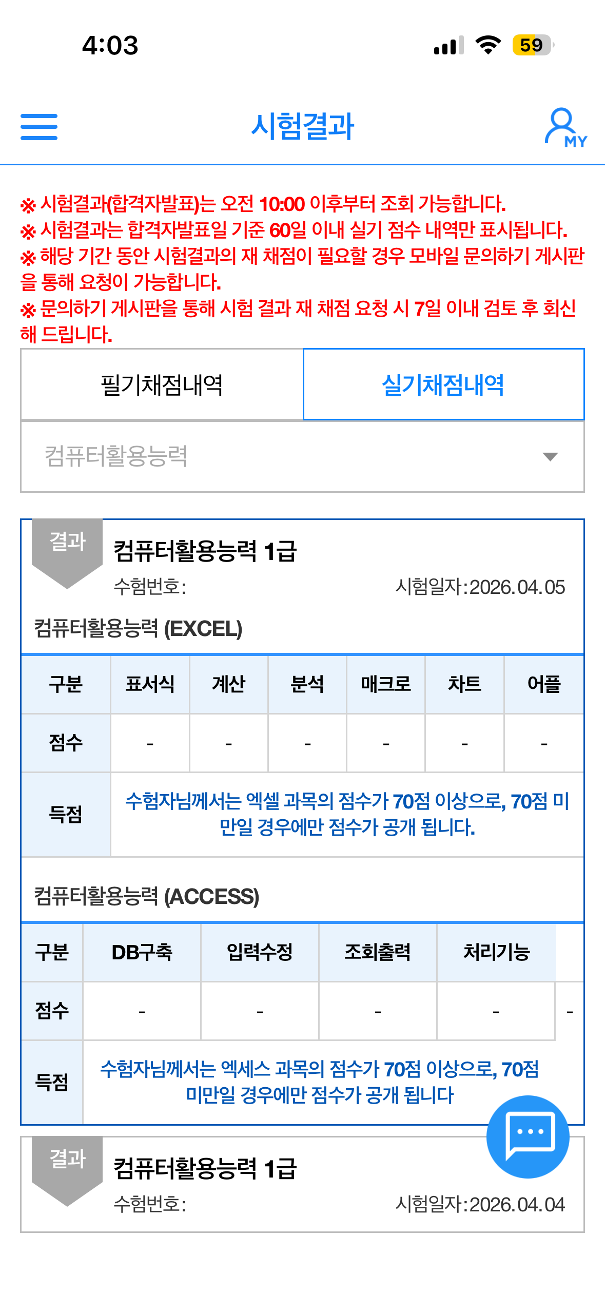 충격적이게도 액셀이 쉬웠던 날은 액세스가 어려웠고, 액세스가 쉬웠던 날은 액셀이 어려워 둘 다 또 불합격...