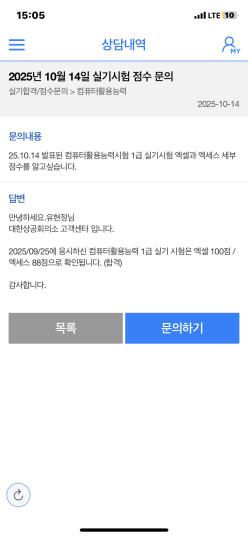 URL복사 링크가 복사되었습니다.kimi**** / 2025-10-11 #커리큘럼이 좋아요 #이해가 잘돼요 #딕션이 좋아요 #적절해요 #필기+실기 내돈내산 컴활2급필기실기 합격후기
