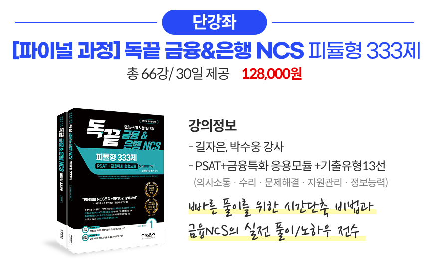 독끝 금융&은행 NCS 피듈형 333제 인강