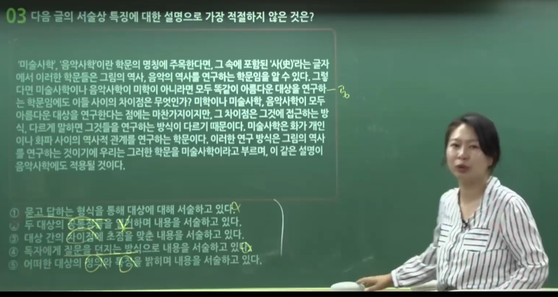강의는 선생님 딕션이 좋아서 또박또박 잘 들리고, 교재를 화면에 꽉 띄운채 화면공유를 하는 형식으로 진행돼 과외받는 느낌도 들었고 편했다. 또 판서해주는대로 따라가다보면 쉽고 확실하게 내용을 습득할 수 있었다. 교재 해설에는 없는 여러 팁들이나 스킬도 배울 수 있고 더 빠르게 이해할 수 있는데다가 다양한 접근법도 배울 수 있으니 교재와 강의를 같이 활용하는게 좋을 것 같다.