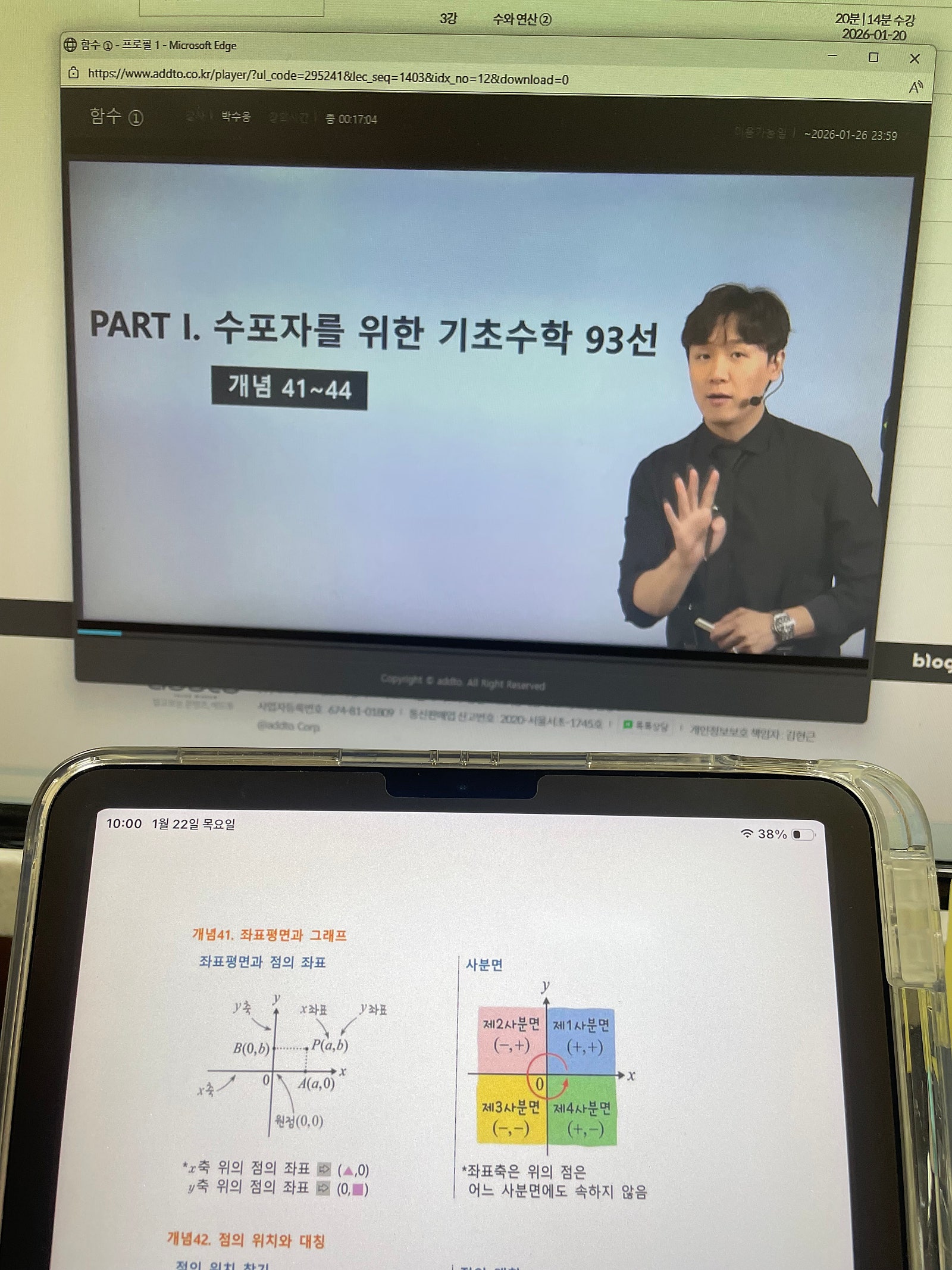 의수문자 전체 강의로 구매했고, 특히 수학은 쌩기초뷰터 잡아쥬셔서 너무 좋았습니다. 다른데가면 꿀팁이라고 알려주긴 하는데 그건 적용 가능한 범위가 너무 한종적이어서 특수한 상황에서만 적용되고 이런게 많더라고요. 박수옹 선생님은 기본기 기반으로 팁을 알려주셔서 그거 따라갔습니드. 쌤 덕분에 기초 잘 쌓았습니다.