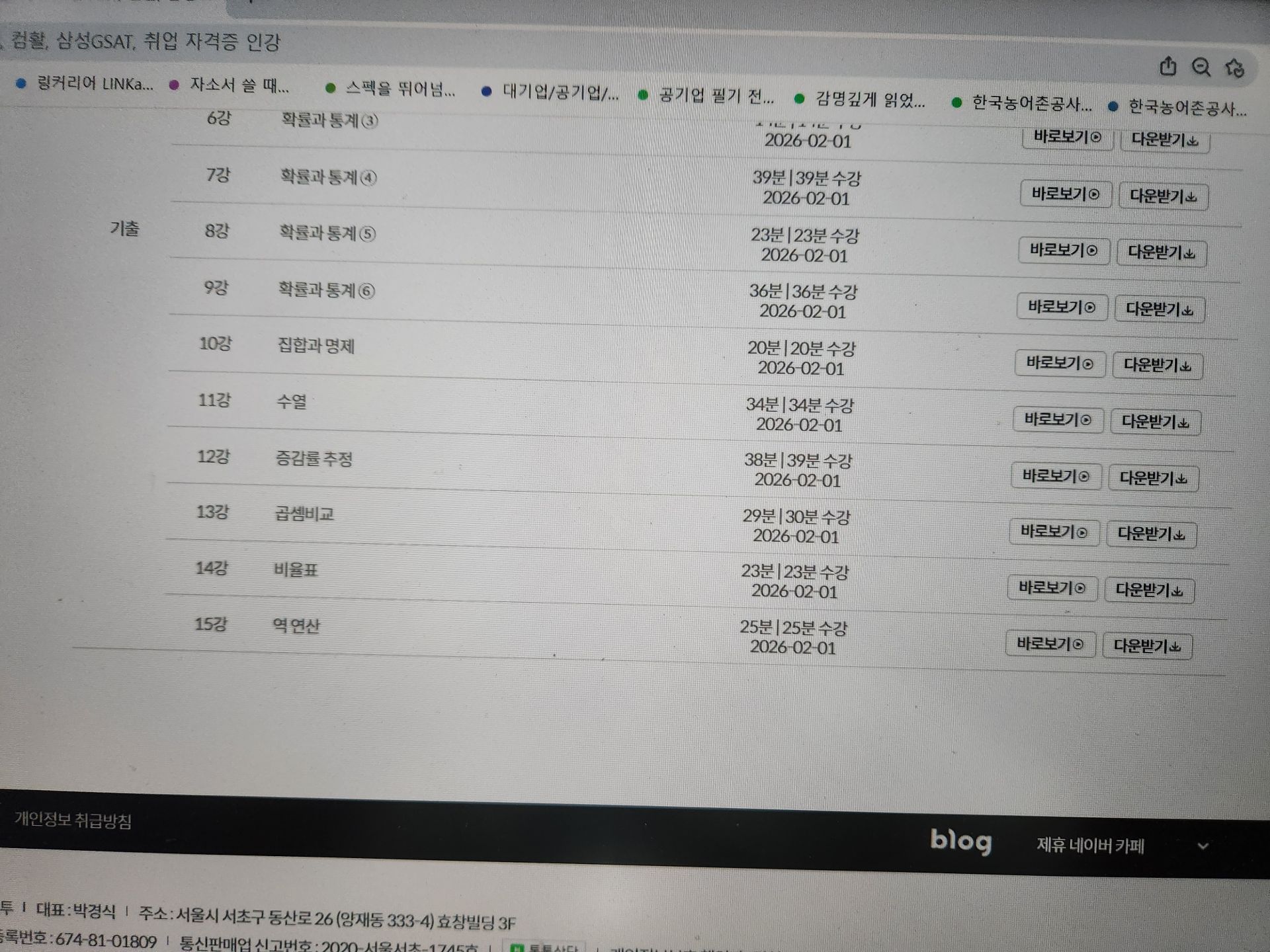 그렇다고 푼 문제는 정답율도 낮았고... 어떻게 해야할지 고민하다가 ncs기초수학 강의를 발견했습니다!!