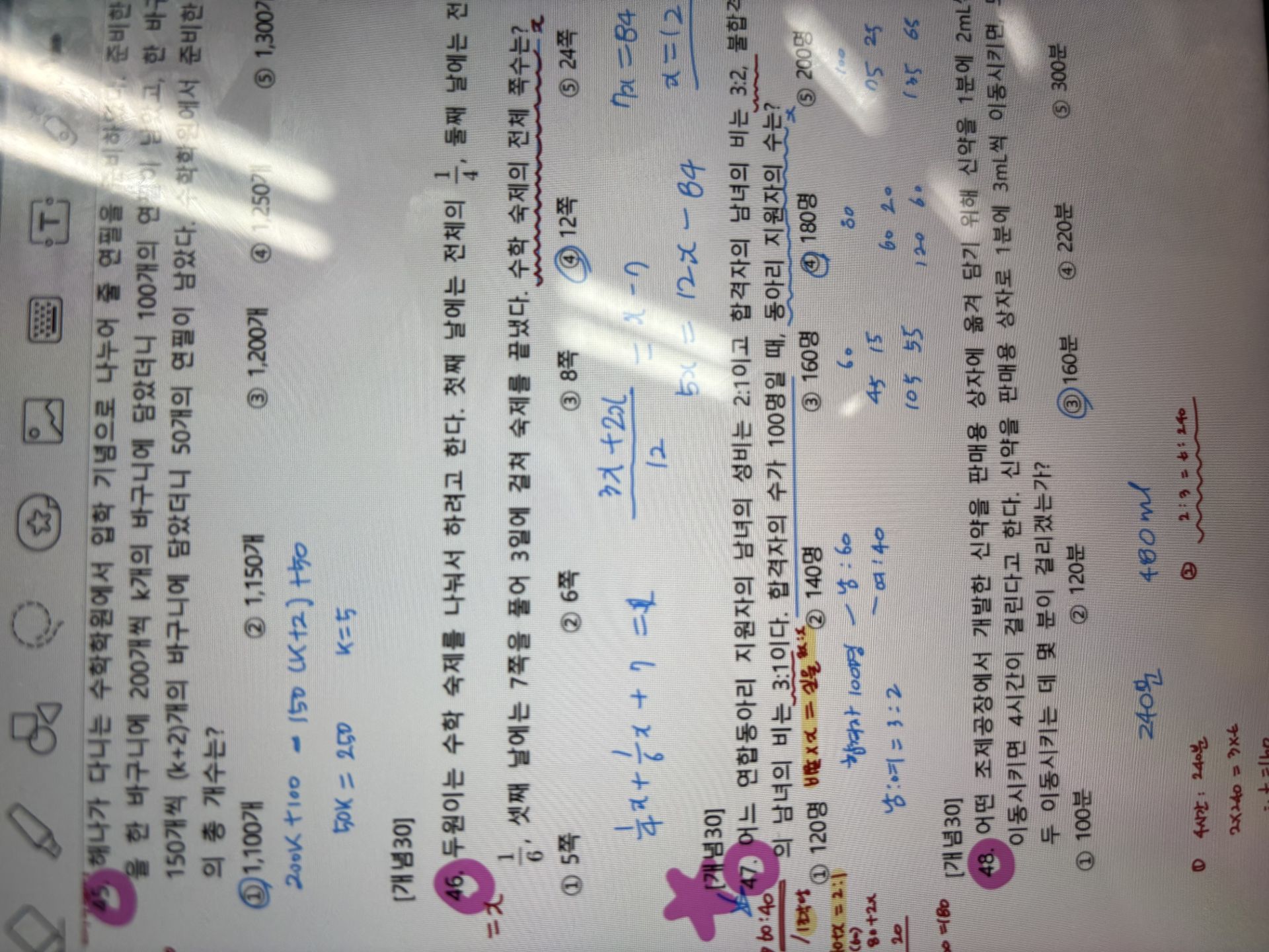 그리고 확률 파트 특히 조건부 확률 문제는 보면 바로 넘기는 문제였는데