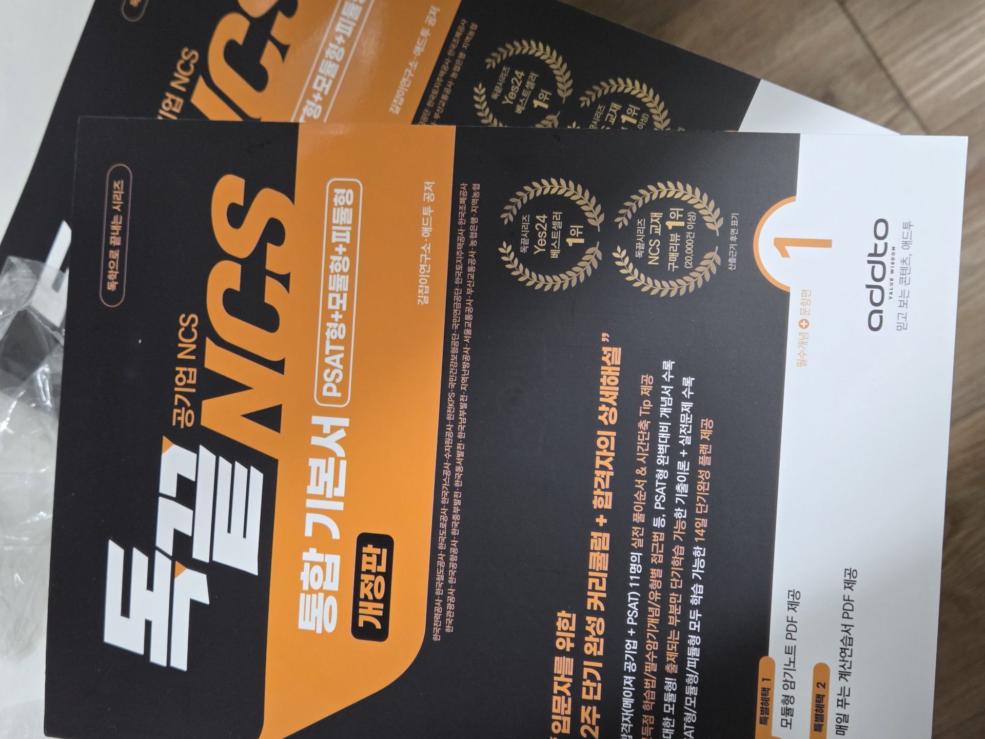 일단 NCS 초보자로서 기본 인강을 들어볼 필요가 있겠다고 느꼈고, 애드투 (박수웅·길자은 독끝 NCS 통합 기본서 이론+문풀(모듈편+피셋편)) 인강을 구매했습니다. 두 분이 파트별로 나누어 강의 진행해주십니다. NCS를 처음 접하는 입장에선 박수웅 강사님의 계산 팁들이 매우 유익했습니다. 500제 인강도 들어보고 싶을 정도로요.. 특히 응용수리가 좋습니다. 속력문제, 소금물문제, 일률문제뿐 아니라 배수문제나 몰아주기 방식 등도 알려주셔서 도움이 많이 됩니다.