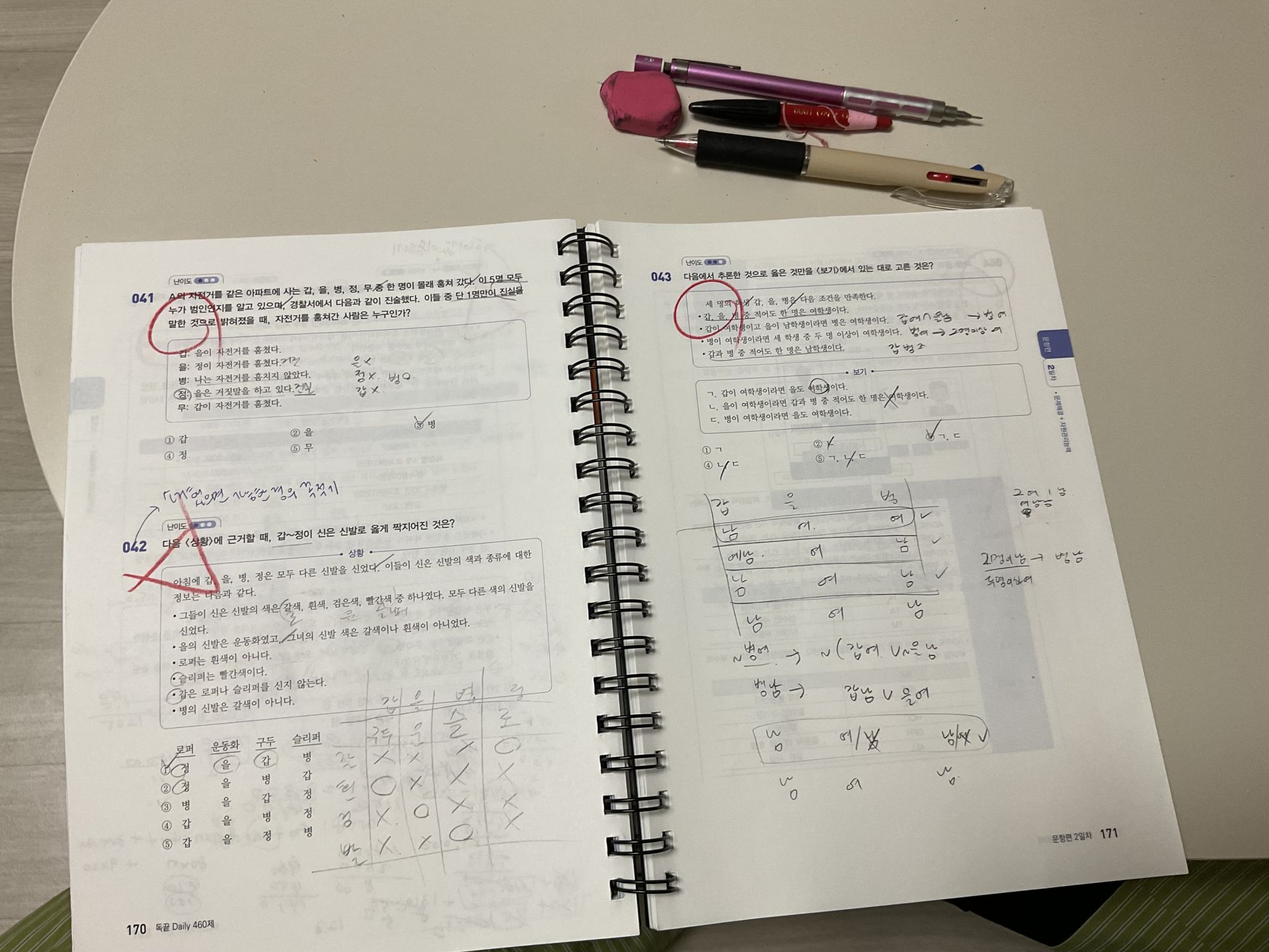 각 문제에 대한 풀이 뿐 아니라 선지에 대한 풀이도 있어서 헷갈리는 선지에 대해 더 확실히 하고 넘어갈 수 있었다. 계산 풀이 과정을 생략하지 않고 자세하게 설명해줘서 초보자도 쉽게 배울 수 있을 것이라 생각된다. 그리고 맞춘 문제더라도 내 풀이 방법이 맞는지 확인해보기 좋고, 합격자의 실전 문제 풀이 순서를 통해 새로운 인사이트를 얻어서 빨리 감잡기에도 좋고 더 빠르게 답을 찾는 연습이 가능하다는 점이 좋았다.