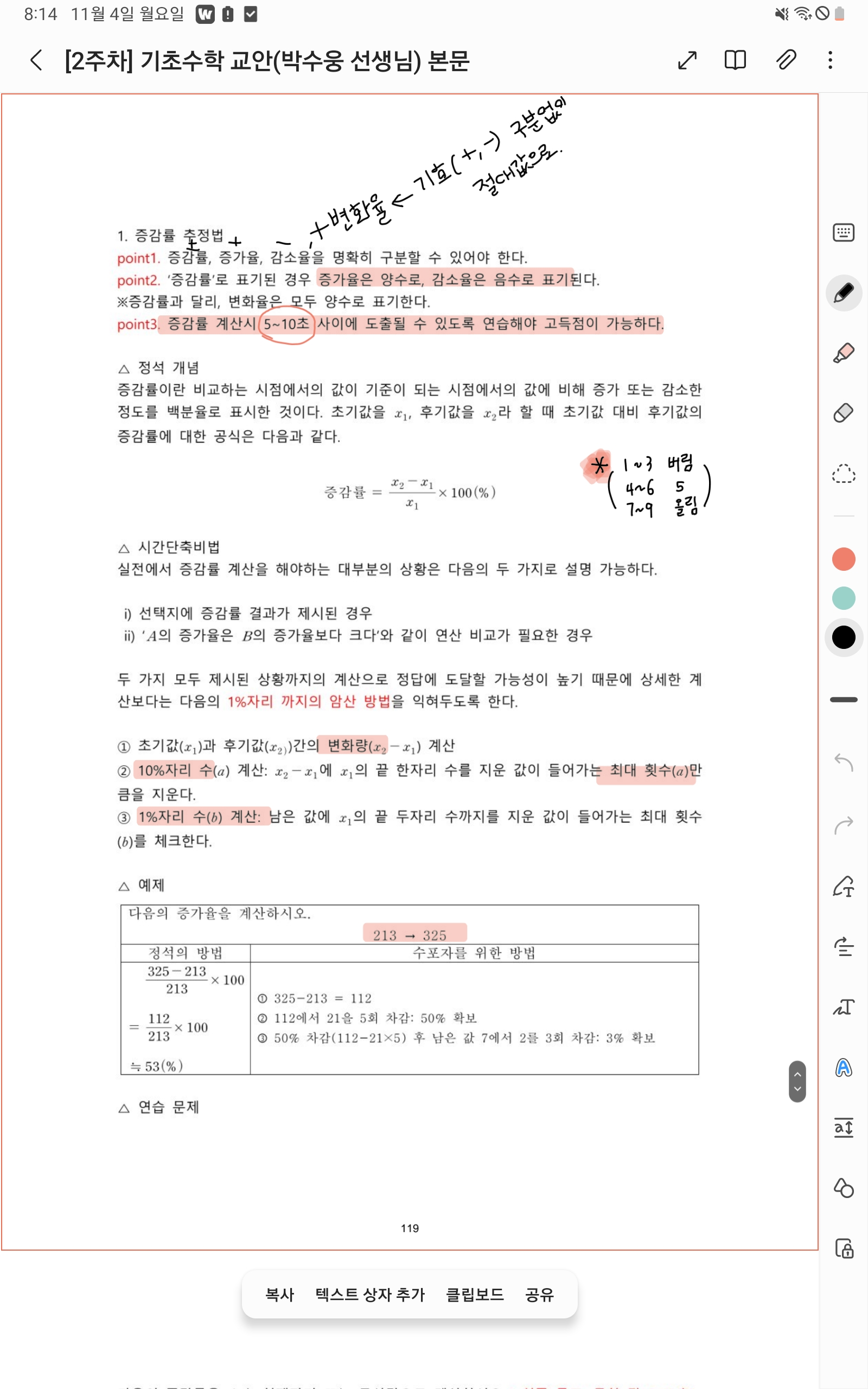 기본서에서 응용수리 파트를 박수웅선생님 강의를 통해 학습하였습니다