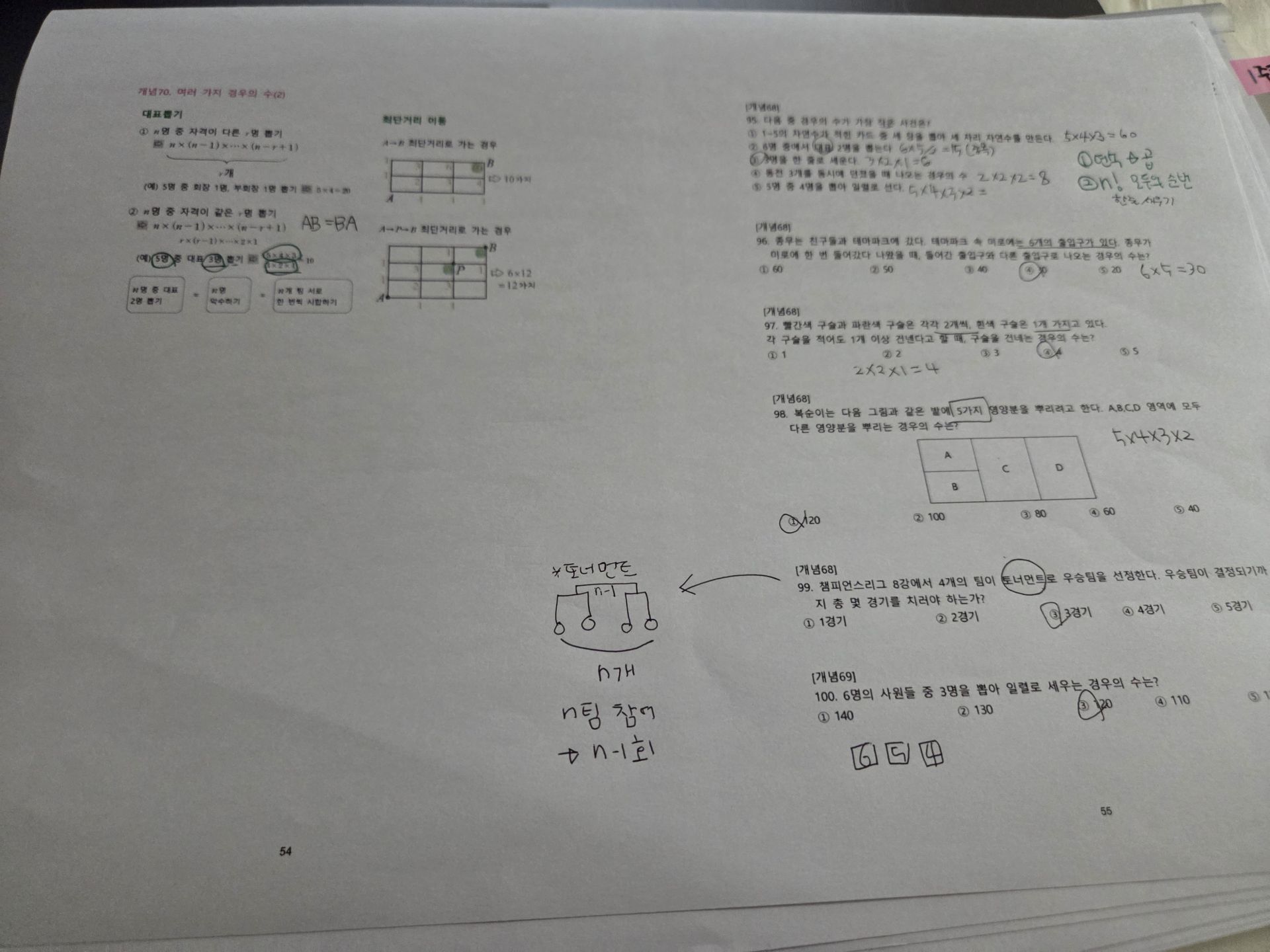 특히 도형 파트에서는 각도와 도형의 성질을 빠르게 파악하는 방법을 익혔고, 확률과 통계에서는 확률을 계산하는 다양한 접근법을 학습했습니다.