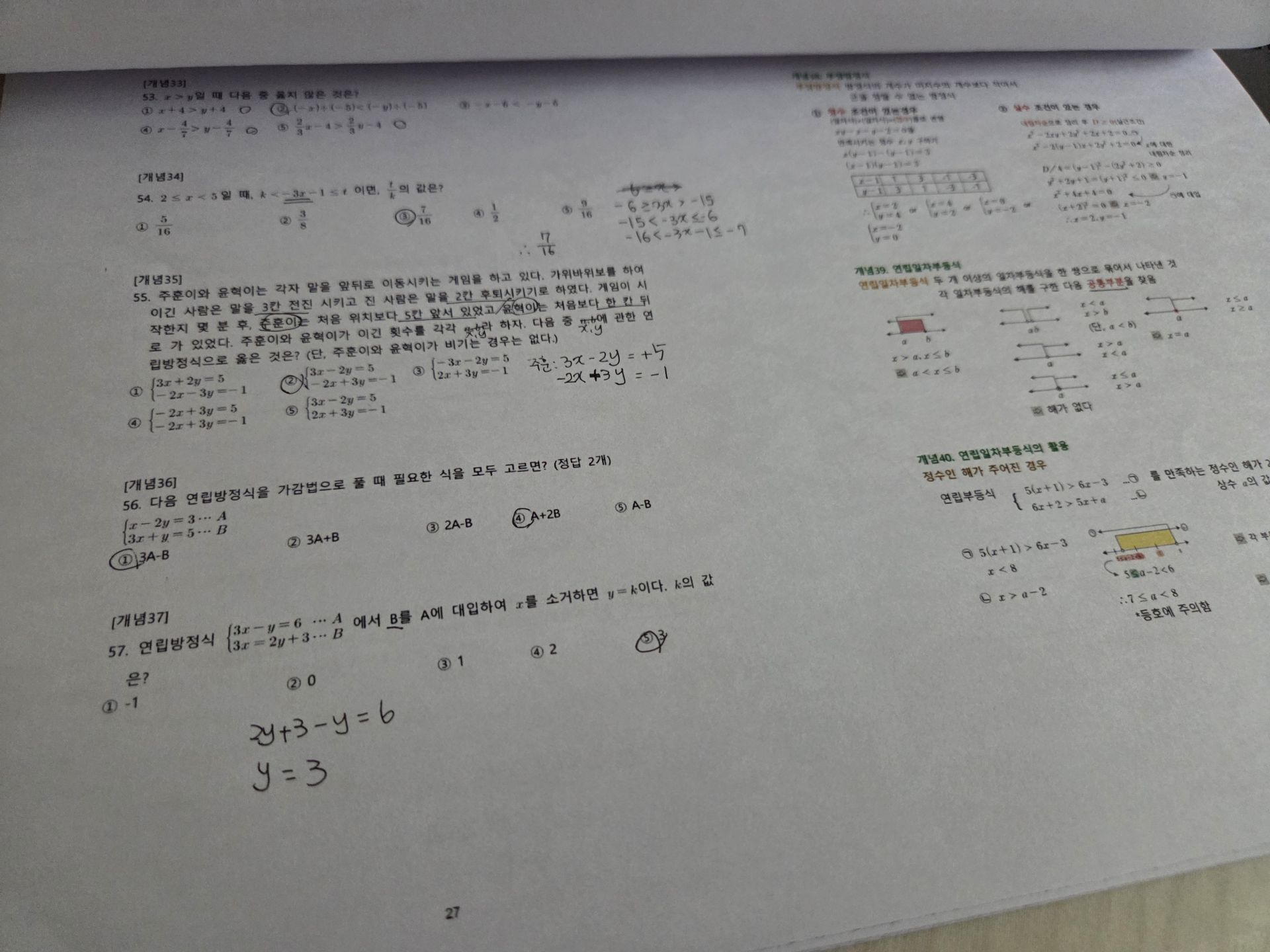방정식과 부등식 단원에서는 단순 계산을 넘어서 문장을 수학적 식으로 변환하고, 수직선 위에서 해를 해석하는 훈련을 반복하며 개념에 대한 이해도가 크게 향상되었습니다.
