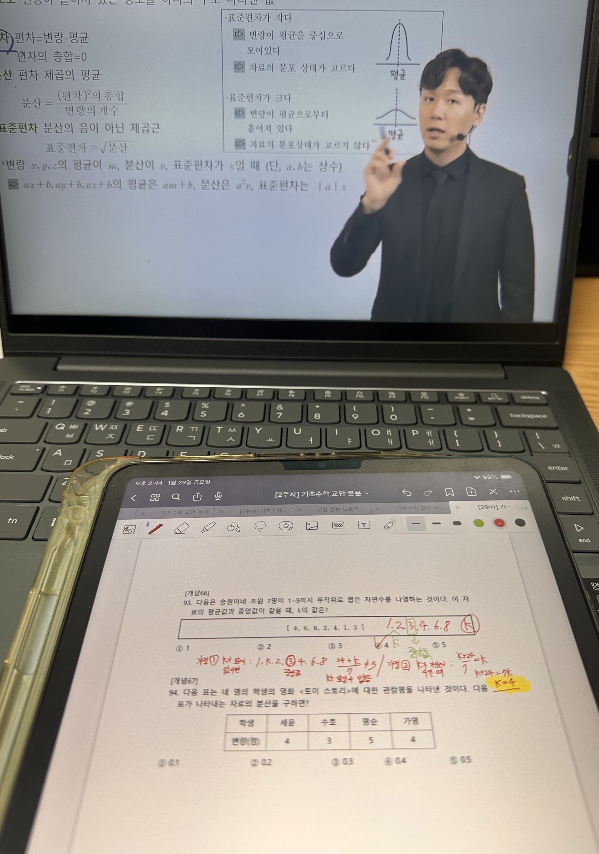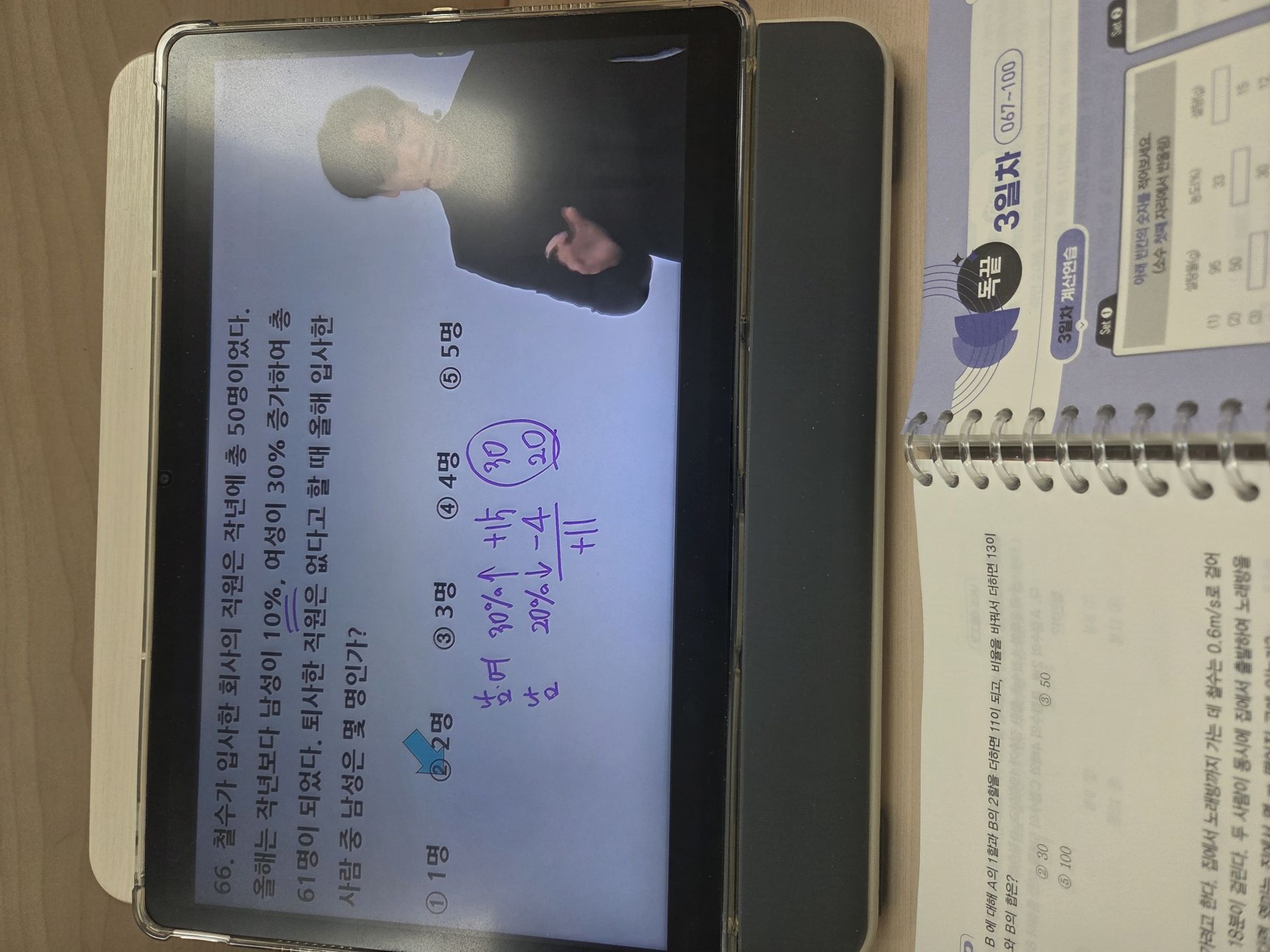 다시 풀어보라는 문제는 일시정지 하고 다시 풀어보았고 선생님 풀이법과 비교해보았습니다.