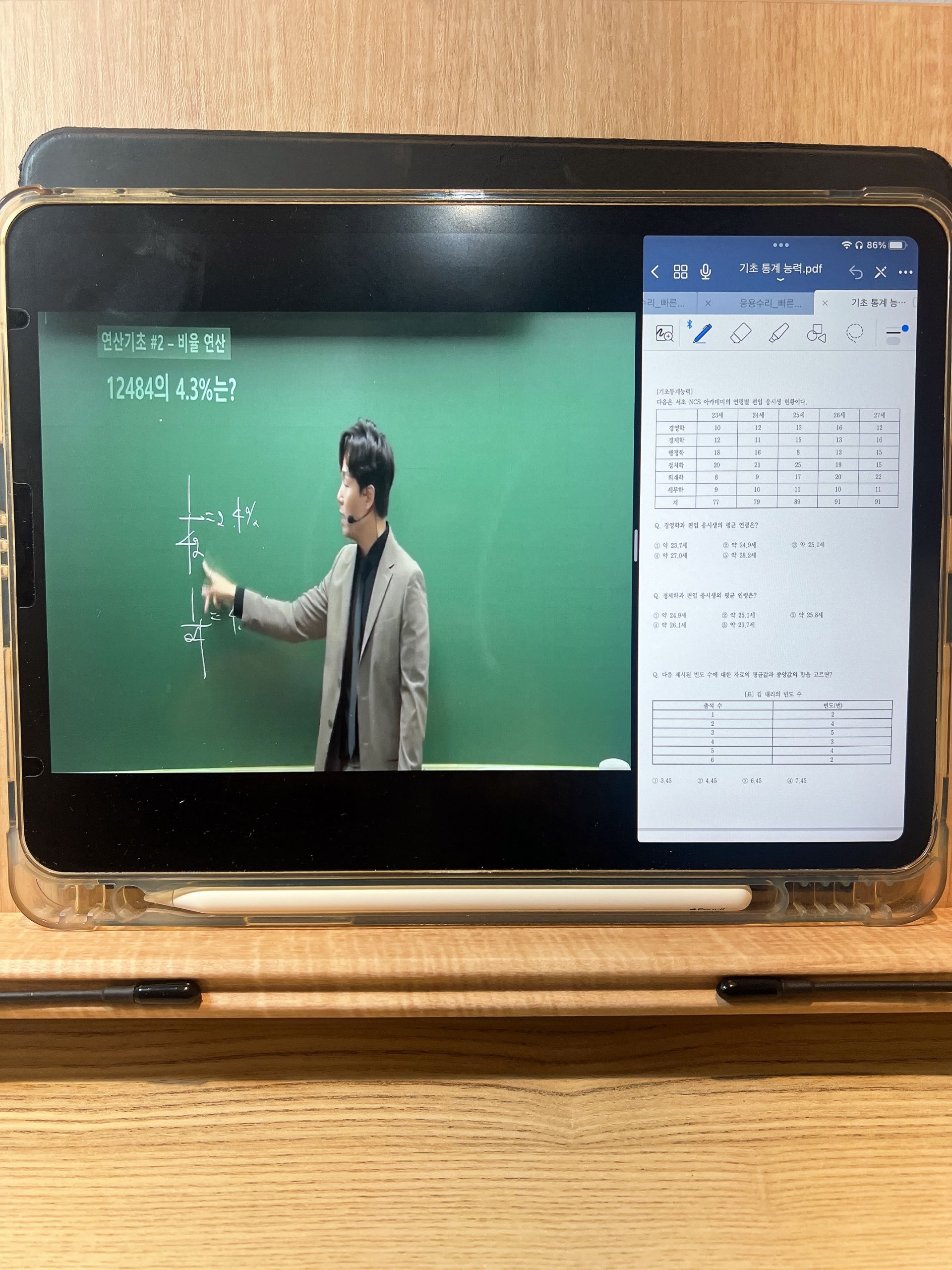 NCS 기본서 강의를 수강하며 자료해석과 응용수리 파트를 집중적으로 학습했습니다.