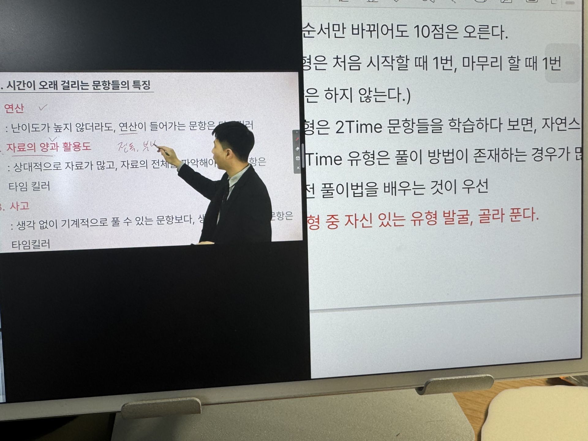 교재 또한 인강 내용과 잘 연계되어 있어 복습하기에 매우 좋았습니다. 유형별로 정리가 되어 있어 강의를 들은 뒤 바로 해당 유형 문제를 풀어볼 수 있었고, 풀이 과정을 다시 확인하며 스스로 부족한 부분을 점검하기에 적합했습니다. 저는 강의를 수강한 후 교재 문제를 풀면서, 강의에서 강조한 포인트를 체크하고 풀이 시간을 함께 기록하는 방식으로 공부하고 있습니다. 이를 통해 불필요하게 시간이 오래 걸리는 지점을 스스로 확인할 수 있었습니다.