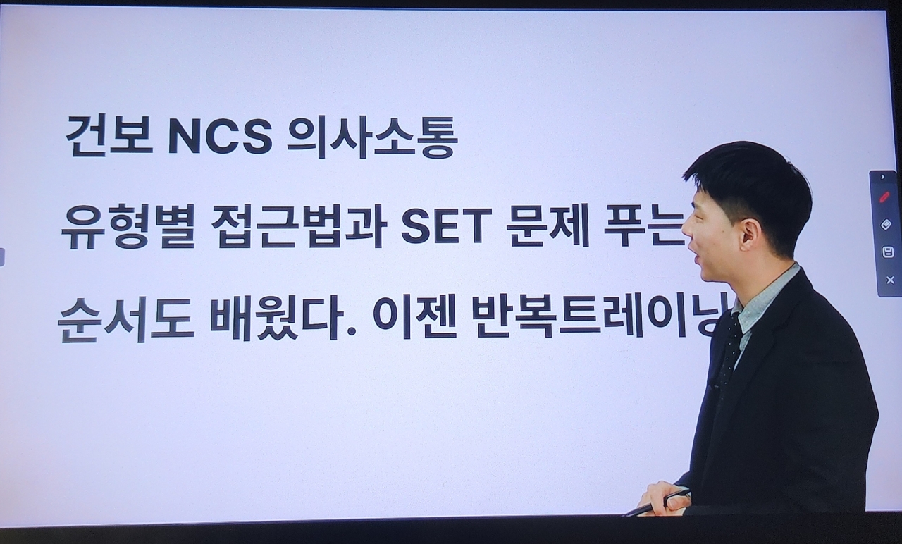 건보필기를 준비하면서 막연한 두려움만 있었는데 잘 설명해주셔서 이해도 잘되었고 ncs 풀이방법도 한사능 출제 유형에 맞춰 잘 설명해주셔서 좋았습니다. Ncs 풀이법, 수리유형에서 너무 어려운 부분이 많았는데 쉽게 풀수있는 방법도 알아가서 너무 좋았습니다. 감사합니다. 남은기간 동안 꿀팁같은 풀이법 정리해서 잘 풀어보도록 하겠습니다.
