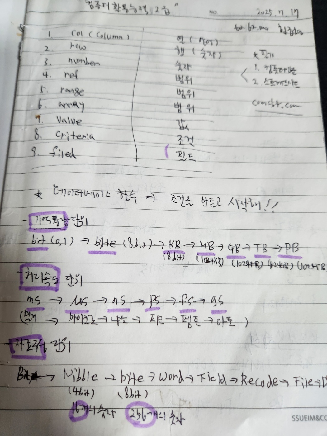 엑셀을 활용하는 업무를 하게 되어서 조금이라도 더 잘하고 싶은 마음에 컴활을 공부하게 되었다!!