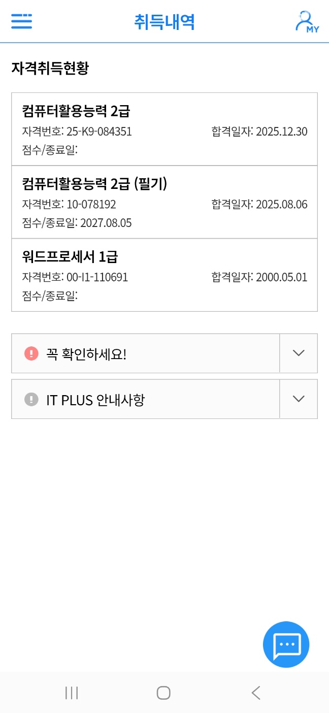 URL복사 링크가 복사되었습니다.kaka**** / 2025-10-14 *이미남 컴활 2급 필기+실기 자격증 수강후기*