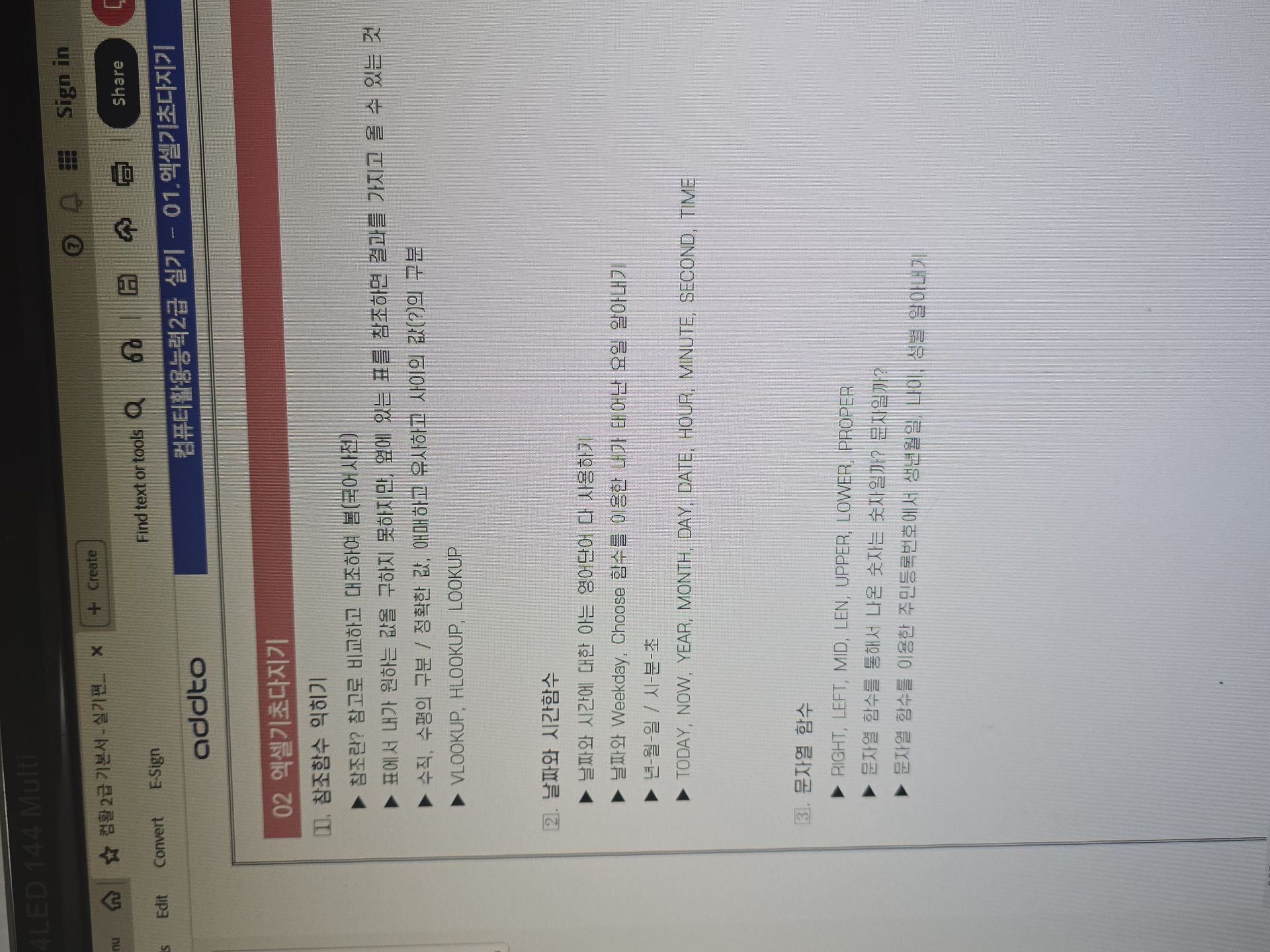 그냥 감(?)과 익숙해서 쓰는 함수만 썼다. 이미남 선생님의 강의를 쭉 들으며 기초부터 차근차근 정리해나가서 안심이 됐다. 예제 파일로 강의를 보면서 직접 한문제씩 같이 풀어보는게 큰 도움이 되었다. 특히 PDF 파일 기본서에 헷갈리는 부분과 기억해두면 좋은 팁들도 필기하면서 공부하니 효율이 2배였다.
