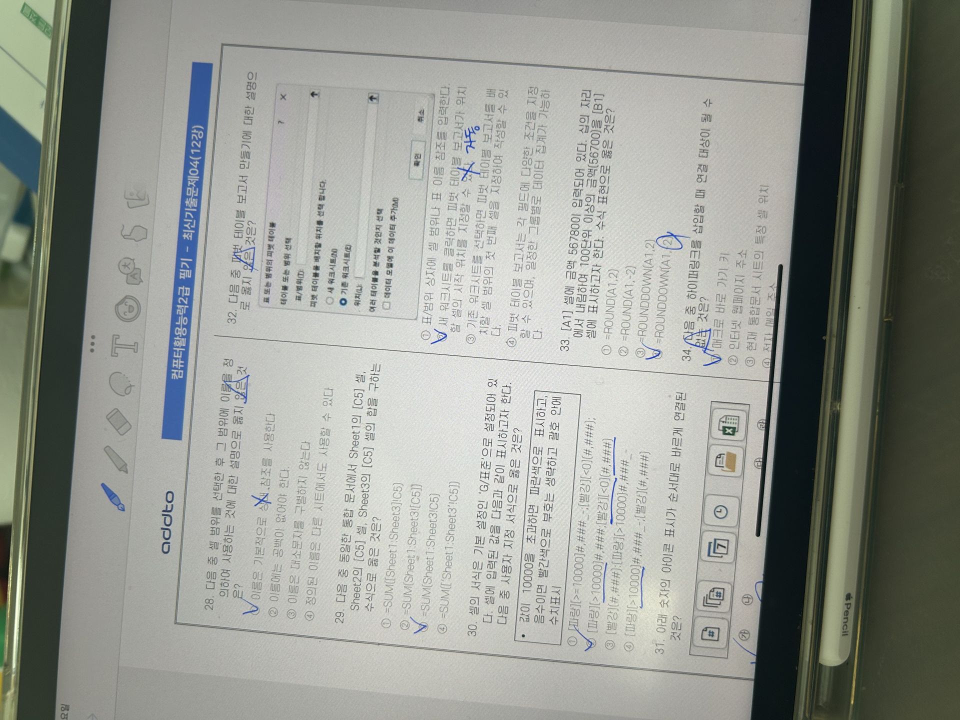 '애드투 이미남 컴활'의 강의 1강~6강을 먼저 수강했는데요. 강의 듣고 교재에 필기할 부분은 필기하면서 엑셀로 따라하는 식으로 공부했어요! 문제 먼저 풀지 않고 실기 기초 강의를 먼저 들으니 문제 풀 때 이해가 더 잘 되더라구요.