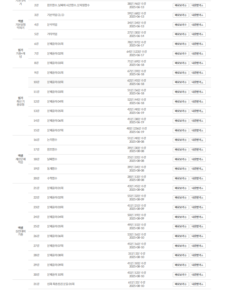 이미남 컴활 2급 필기+실기 강의를 수강했습니다! 이 강의의 장점은 그냥 커리큘럼만 따라 가면 된다는 점입니다. 따로 인터넷이나 영상 등을 찾아볼 필요없이 강의만 수강하면 된다고 생각합니다.