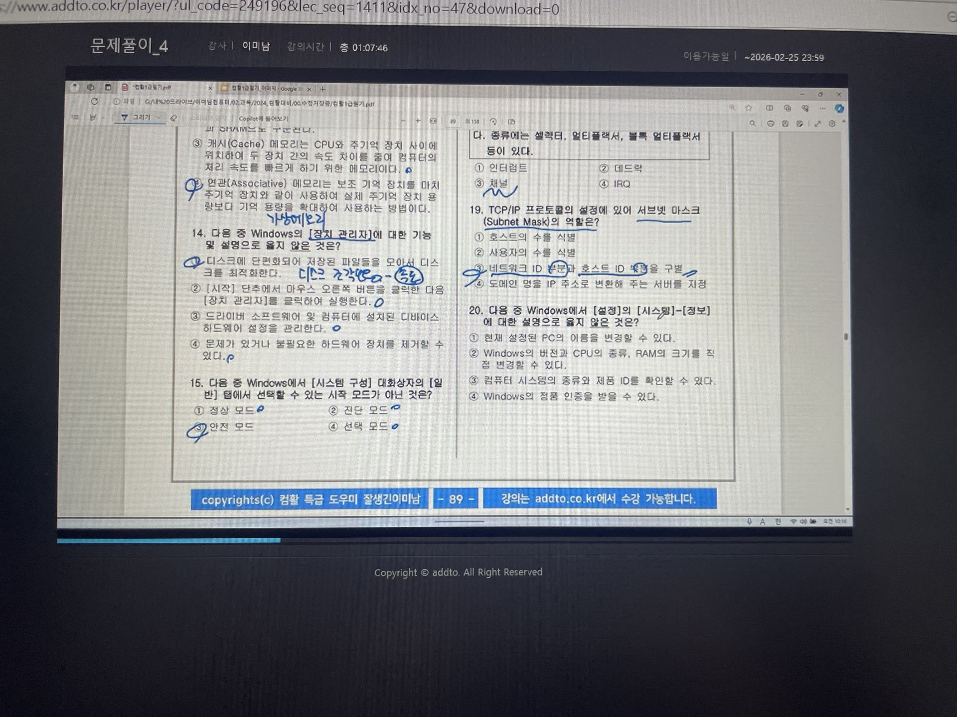 그래도 미리 문제를 풀어보고 막히는 문제 등은 동영상을 보고 이미남 선생님께 직접 질문을 하며 해결할 수 있었습니다.