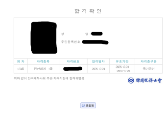 URL복사 링크가 복사되었습니다.kaka**** / 2025-07-29 내돈내산 전산회계1급 합격 후기입니다!